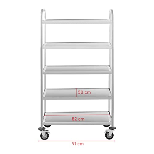 Royal Catering RCSW-5.1 Carrello Portavivande Carrello di Servizio Carrello Cucina (5 Ripiani, Capacità di Carico 250 kg, Distanza tra i Vassoi 27 cm, Protezione Anti-Urto) Acciaio Inox
