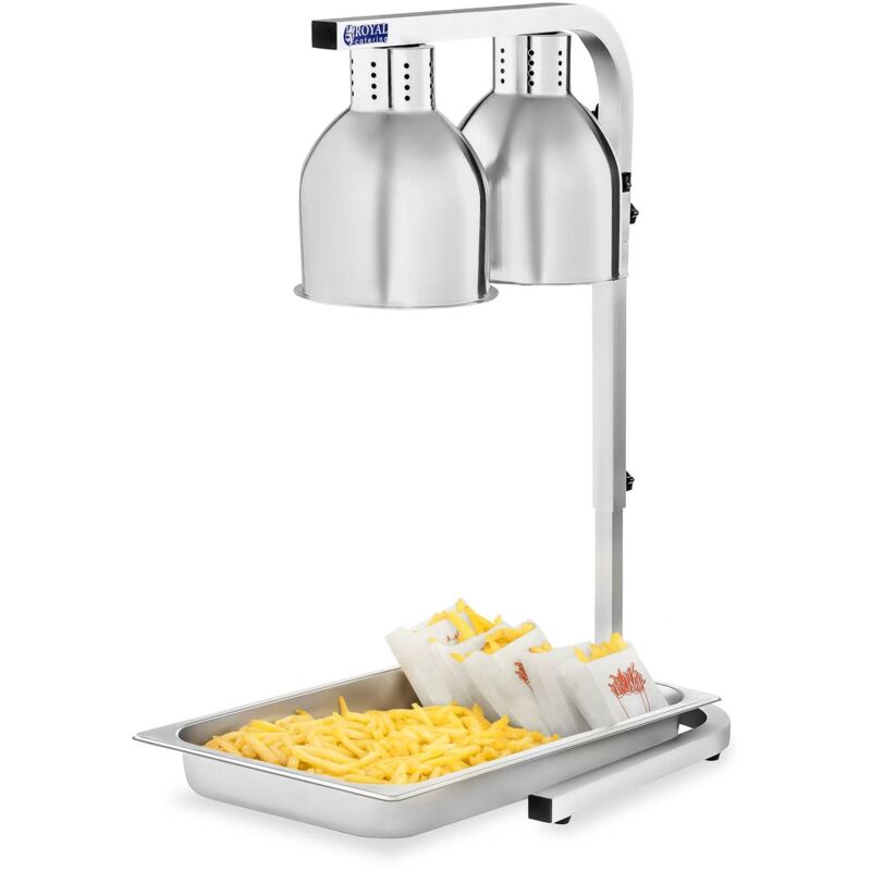 Lampada riscaldante per alimenti a raggi infrarossi - con contentitore GN 1/1 La lampada riscaldante per alimenti RCWB-5501 della Royal Catering vi offre la fantastica opportunità di mantenere caldi i cibi cucinati da poco come le patatine fritte, le cotolette o le frittelle, in questo modo potrete servire ai vostri ospiti le pietanze che avete cucinato ancora calde. Grazie alla sua versatilità questo scaldavivande è ideale sia nelle cucine dei ristoranti sia nei buffet. Inoltre, la luce che illumina gli alimenti attirerà l'attenzione dei vostri clienti.