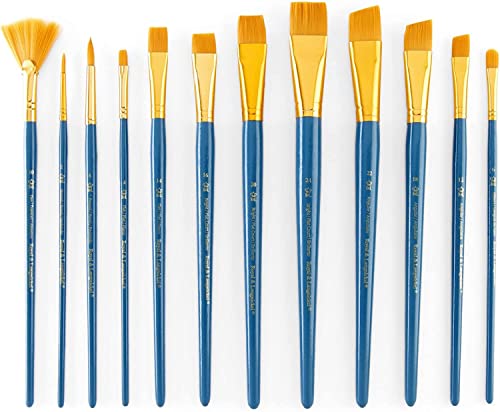 Royal and Langnickel RSET-9307 - Set di pennelli medi con ghiera dorata e setole in Taklon, confezione da 12