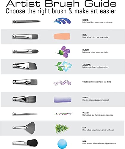 Includes 3 Brights, 2 Flats, 2 Rounds, 3 Angulars, 1 Filbert & 1 Fan