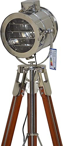 Royal Nautical Lampada da terra con finitura cromata, realizzata a mano, stile vintage, con treppiede, per la casa e l'ufficio