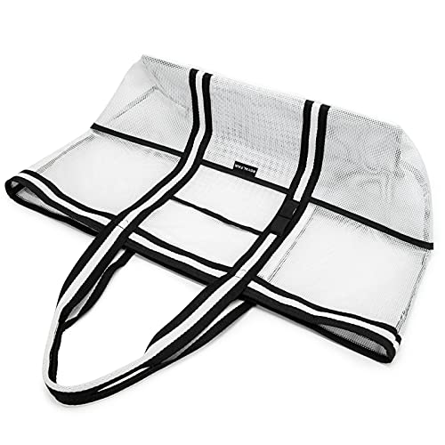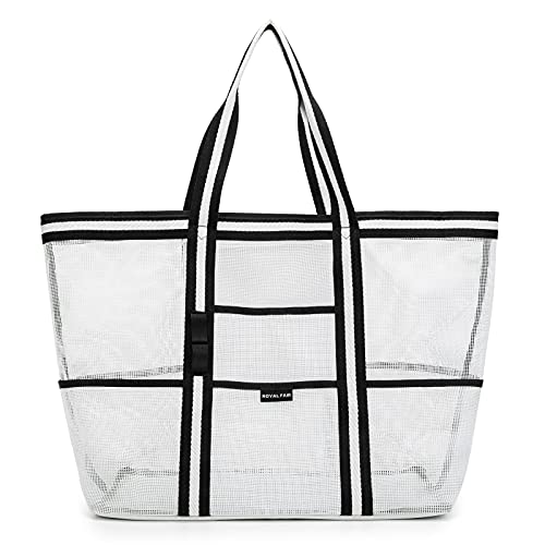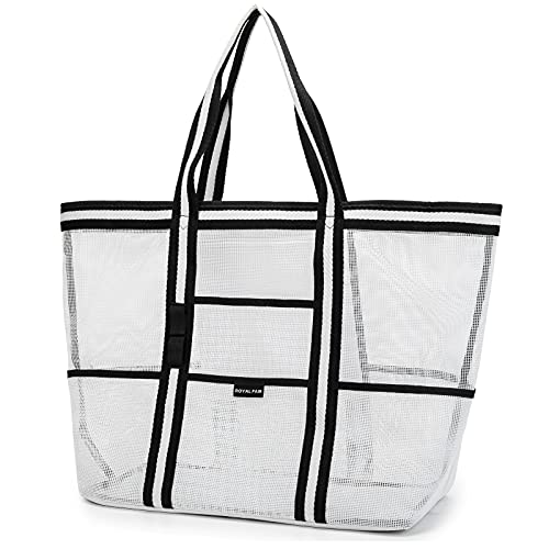 ROYALFAIR Borsa Mare Donna Grande - Borsa da Spiaggia Estive Borse Tote tracolla Borsa Spalla a Rete Impermeabile: per Viaggio & Shopping & Mare & Picnic (Bianco nero)