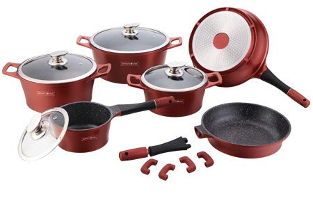 Royalty Line 369C Set da Cucina 15 Pezzi, Pietra, Rosso, 15 Pezzi