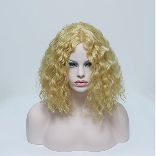 Royalvergine, parrucca corta da donna con capelli biondi ricci, piena macchina, parte centrale Cospaly partito parrucca con bsngs