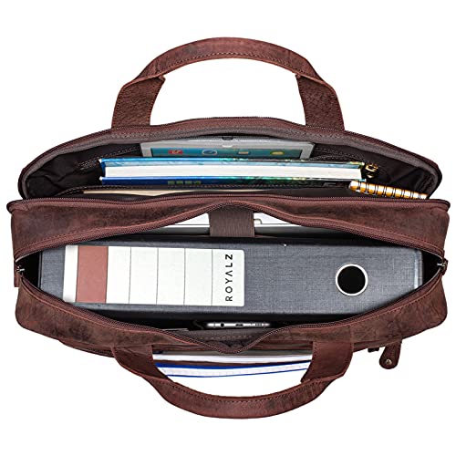 ROYALZ 'Boston' Borsa a Tracolla Grande in Pelle da Uomo per Computer Portatile da 15.6 pollici Borsa Messenger con Look Vintage Valigetta, Colore:Ohio Marrone
