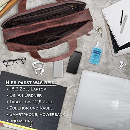 ROYALZ borsa grande in pelle da uomo incluso scomparto 15.6'' laptop - ideale per viaggiare e conservare in modo sicuro il tuo laptop, documenti, cartelle A4 strette e tanto altro