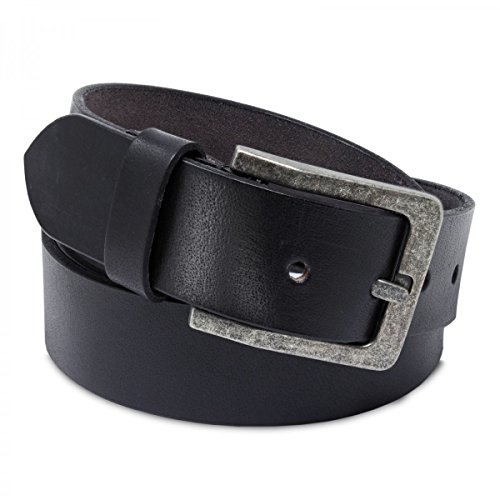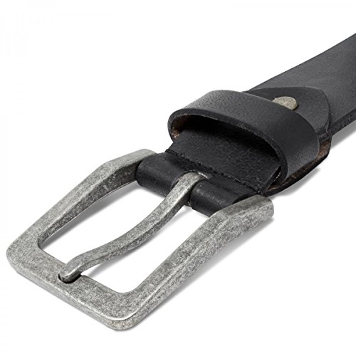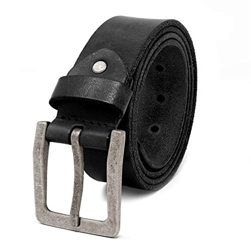 ROYALZ Cintura Uomo in robusta pelle di bufalo 4 mm, Cintura vintage per Jeans con fibbia ad ardiglione - Larghezza della cinghia 38 mm, Colore:Nero, dimensione:130