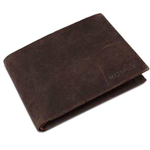 ROYALZ Portafoglio Noble Classico da Uomo in Vera Pelle con Portamonete Formato Verticale Cuoio Liscio, Colore:Antico Marrone Scuro