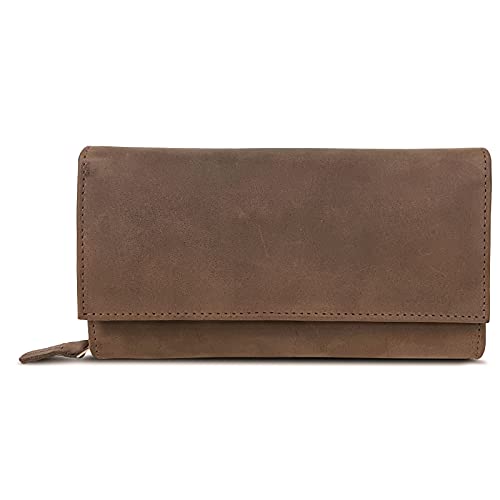 ROYALZ portafoglio vera pelle donna portamoneta grande capiente porta carte credito 18 scomparti bloccaggio protezione RFID etui lungo, Colore:Montana marrone