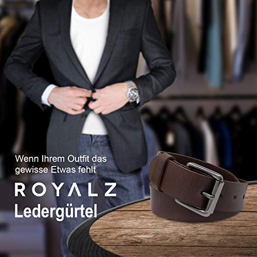 ROYALZ Vintage Cintura Uomo in robusta pelle di bufalo 4 mm, Cintura per Jeans con fibbia ad ardiglione antico - Larghezza della cinghia:38 mm, Colore:Marrone Scuro, dimensione:115