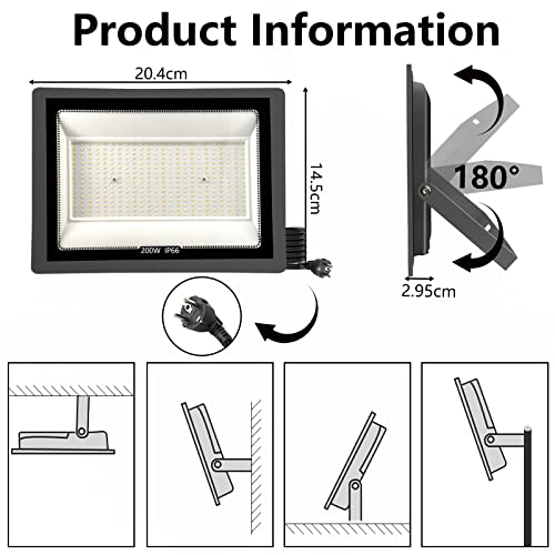【Facile da Installare】La luce LED esterna è dotata di cavo da 1,2m e presa di corrente EU, plug and play. staffa metallica regolabile a 180°, che è conveniente per entrare a soffitto, parete, pavimento, ecc.Se non sei soddisfatto della lampada LED esterna o hai domande sul prodotto, contattaci e ti aiuteremo entro 24 ore
