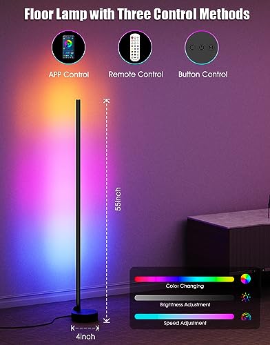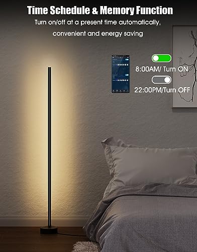 ✨【Telecomando e Controllo APP Lampada da Terra】--Royana Lampada da terra del LED può essere controllata dal telecomando e dall'APP di Bluetooth. La lampada da terra LED intelligente Bluetooth, compatibile con smartphone, offre molte funzioni intelligenti come regolazione della luminosità, modalità di selezione, modalità fai-da-te, sincronizzazione con musica o microfono, timer, ecc. (La distanza di rilevamento dell'APP per smartphone e del telecomando è 12M.)