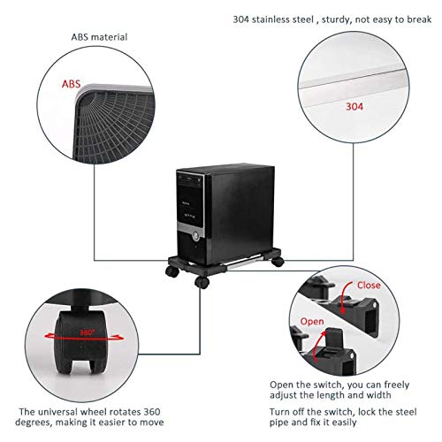 1. Supporto di dissipazione del calore: questo supporto della CPU presenta 4 rotelle rotabili a 360 gradi per un facile movimento e possono bloccare il tubo in acciaio per mantenere il caso del computer in posizione quando non è necessario, facile da posizionare e installare, rendendo così facile la pulizia del pavimento facile .