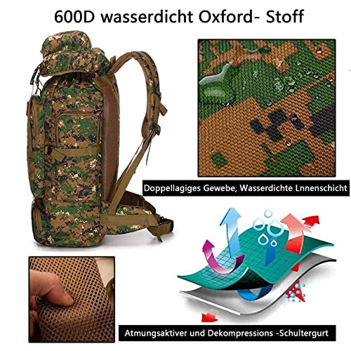 Rozhuhro Zaino Tattico Militare 600D Oxford, 80L Zaino da viaggio Tattico da Campeggio Impermeabile di Grande Capacità, Zaino da Hiking con Sistema Molle per Sport all'aria Aperta,Jungle camouflage