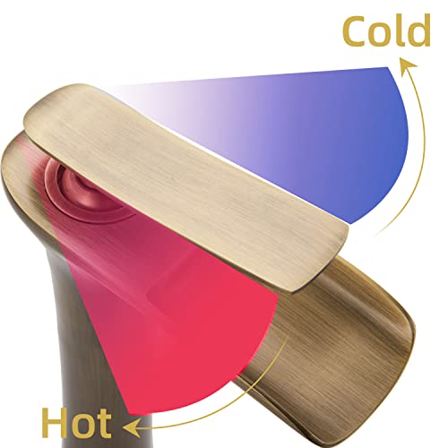 Il rubinetto è alto e adatto per il lavabo sopra il bancone. La finitura in ottone antico resiste all'ossidazione e alla corrosione dall'uso quotidiano. Rubinetto per lavabo con foro singolo, diametro del foro del lavandino: 33-43 mm