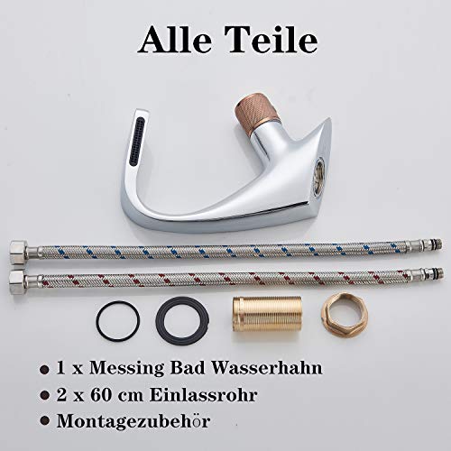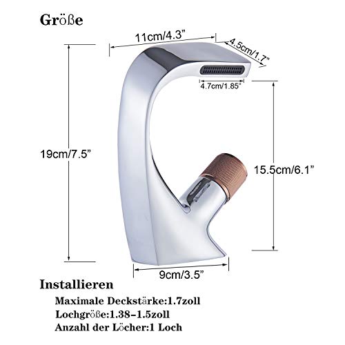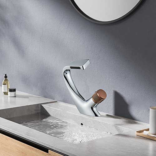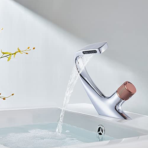 Rozin Rubinetto per bagno a cascata in ottone cromato e oro rosa moderno, utilizzabile con una sola mano, acqua fredda e calda