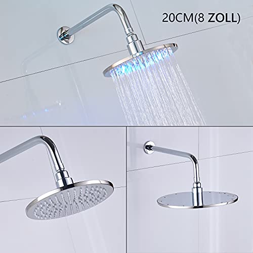 Rozin Sistema doccia cromato a incasso sistema doccia a pioggia in ottone doppia funzione con soffione a pioggia rotondo a LED da 8 pollici e doccetta