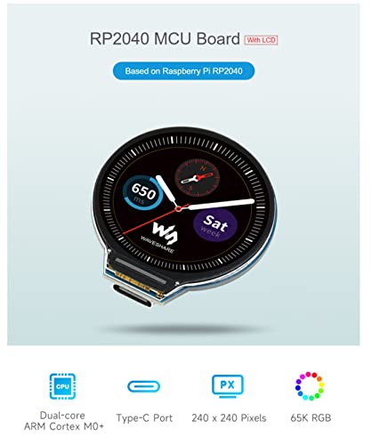 RP2040 MCU Board with 1.28inch LCD,Round Shape, Accelerometro and Gyroscope Sensor,30 × Multi-Function GPIO Pins