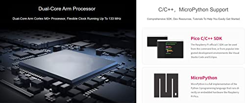 Dual-core Arm Cortex M0+ processor, flexible clock running up to 133 MHz, 264KB of SRAM, and 2MB of on-board Flash memory