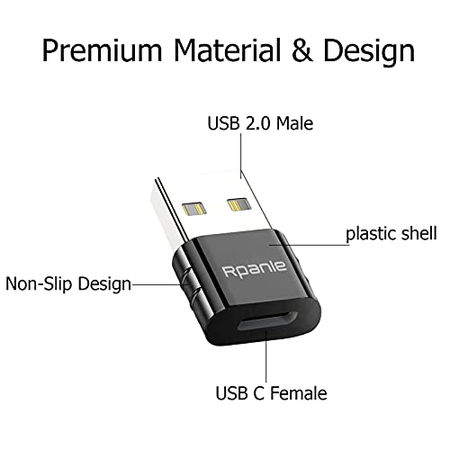 Rpanle Adattatore USB C Femmina a USB Maschio, [4 Pezzi] USB ad Alta Velocità Tipo C a USB 2.0 Sincronizzazione Dati Convertitore, per Samsung Galaxy Note 10 S20 Plus y Otro Dispositivo USB C (Nero)