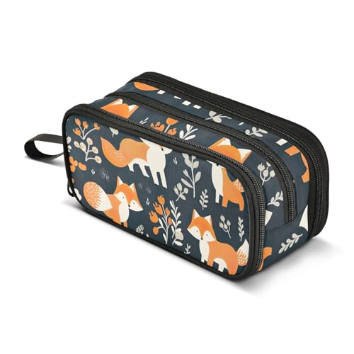 RPLIFE Astuccio per matite con volpi e fiori, grande astuccio in tessuto, astuccio in tela