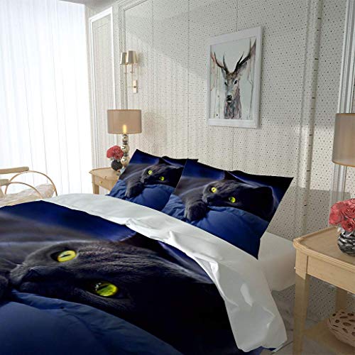 RQXRTR 3 Pezzi Set di Biancheria da Letto Copripiumino Una Piazza E Mezza Bambini 200X200cm con 2 Federe 50X80cm Copripiumini 1 Piazza E Mezzo in Poliestere Microfibre Stampa 3D Gatto Nero