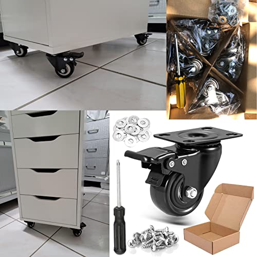 RRIUTO Ruote per Mobili da 50mm, Ruote per Carrello con Freno Rotelline Girevoli Capacità Totale 300KG, Rotelle Antigraffio con Freno Silenzioso Ruotabili a 360°, con Viti e Cacciavite