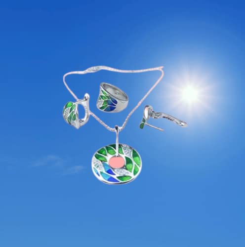 RRomaS Collana pendente donna in argento sterling 925 rotondo con foglie verde smeraldo fatto a mano e zirconi cubici, Zirconia cubica Argento sterling, Ciconite Cubica