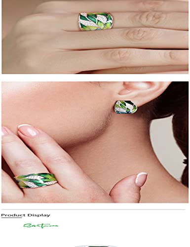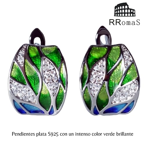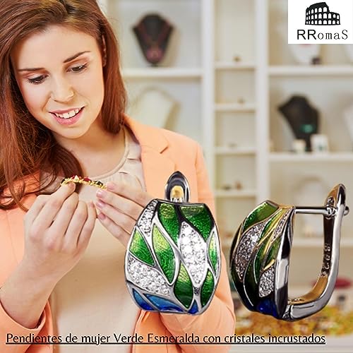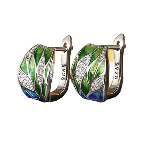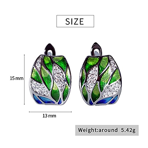 Orecchini da donna in argento Sterling 925 di dimensioni o grandi, con colori vivaci di smalto dipinto a mano in verde smeraldo e intarsiato con zirconi cubici, che conferiscono loro un aspetto brillante e colorato