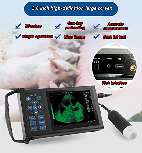 RSGK Ecografo Portatile per Bestiame B con 16 Tipi di Pseudo-Colori E Schermo LED da 5,6 Pollici per Test di Gravidanza su Bovini, Pecore, Cavalli E Suini