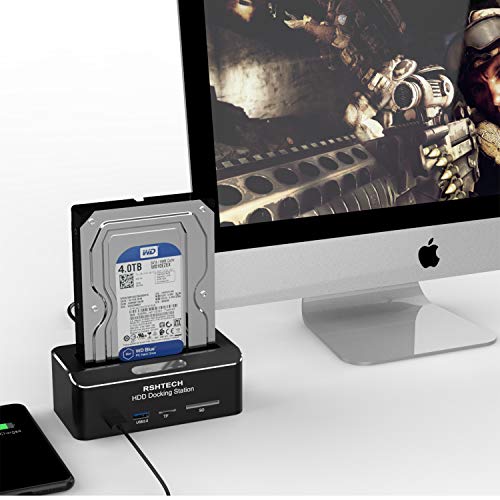 RSHTECH - Docking station per dischi rigidi in alluminio USB 3.0 per HDD SATA da 2,5 e 3,5 pollici, con scheda SD & TF e copertura della molla ABS, supporta fino a 6 Gbps e unità da 16 TB