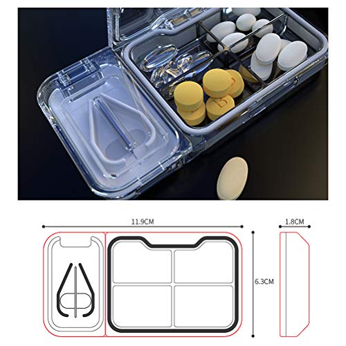Rsoamy Portapillole, portapillole, Dispenser per farmaci Trasparente e conveniente con divisore per compresse e taglierina per compresse Tagliapillole