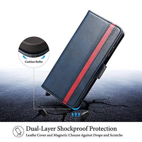 Rssviss Cover per Samsung Galaxy M51, Custodia in Pelle PU per Samsung Galaxy M51, 4 Slot per Carte e Soldi con Chiusura Magnetica/Supporto Stand, 6,7 pollici blu scuro