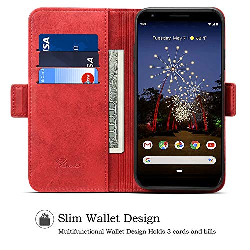 Rssviss Custodia per Google Pixel 3a, custodia in pelle PU di Pixel 3a con scomparti per carte di protezione Google Pixel 3a fibbia magnetica tasca 5,6 pollici rosso