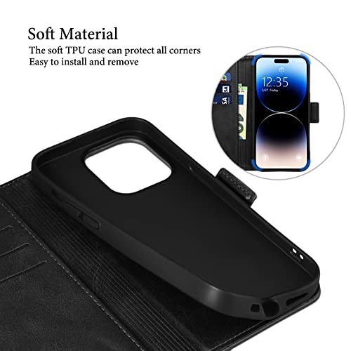 Rssviss Custodia per iPhone 14 Pro, iPhone 14 Pro, custodia in pelle PU, 4 scomparti per carte di credito con chiusura magnetica, funzione leggio, custodia per iPhone 14 Pro, 6,1 pollici, colore nero