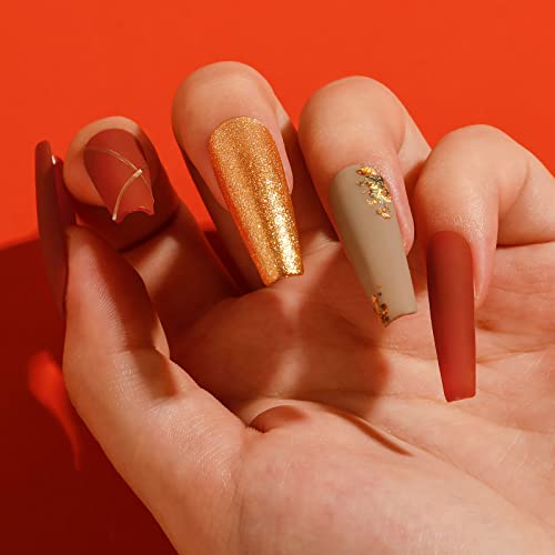 RSTYLE Smalti Semipermanenti Per Unghie, 4 Colori Marrone Gold Castagna Glitter Semipermanente Unghie Smalto Semipermanente Smalti Gel per Unghie Nail Polish UV LED Gel Unghie Manicure Set 5ml