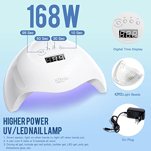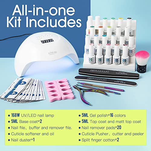 : Questokit unghie gel completo contiene 16 flaconi di colla smalto semipermanente + 2 flaconi di primer + 2 flaconi + Lampada UV ad alta potenza da 168 W, e 11 strumenti per manicure. Un kit super adatto ai principianti con tutti gli strumenti di base necessari per una manicure con smalto gel, puoi facilmente realizzare le tue unghie preferite a casa, realizziamo bellissime unghie insieme!