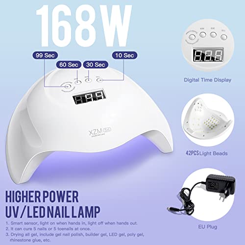 : Questokit unghie gel completo contiene 16 flaconi di colla smalto semipermanente + 2 flaconi di primer + 2 flaconi + Lampada UV ad alta potenza da 168 W, e 11 strumenti per manicure. Un kit super adatto ai principianti con tutti gli strumenti di base necessari per una manicure con smalto gel, puoi facilmente realizzare le tue unghie preferite a casa, realizziamo bellissime unghie insieme!