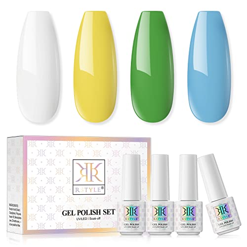 RSTYLE Smalto Semipermanente per Unghie 4pcs, Verde Blu Giallo Bianco Semipermanente Unghie UV LED Smalti Semipermanenti per Unghie Salone e Manicure per Smalto Unghie Professionale