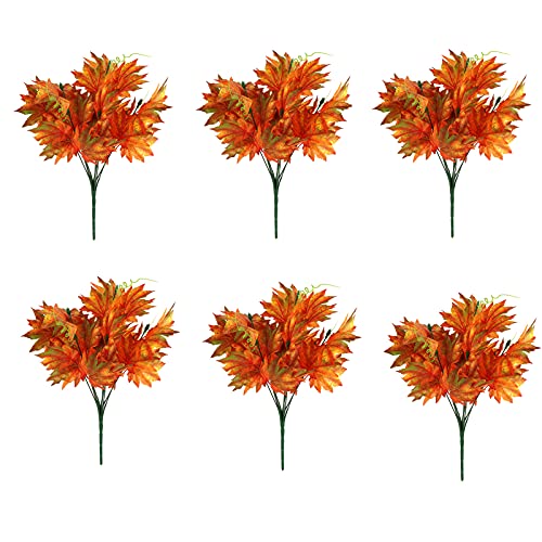 RSTYS - Set di 6 foglie di acero finte in seta, rami di foglie di acero artificiali, per Natale, festa del Ringraziamento, autunno