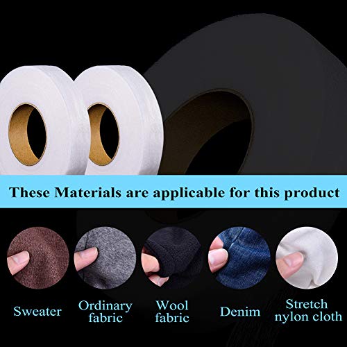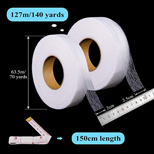 RSVOM Nastro per orlo 2Pack, Nastro adesivo per orlo Ferro su tessuto Nastro per fusione per vestiti Pantaloni Tende Artigianato fai-da-te, 140 iarde 20 e 25 mm con metro a nastro morbido