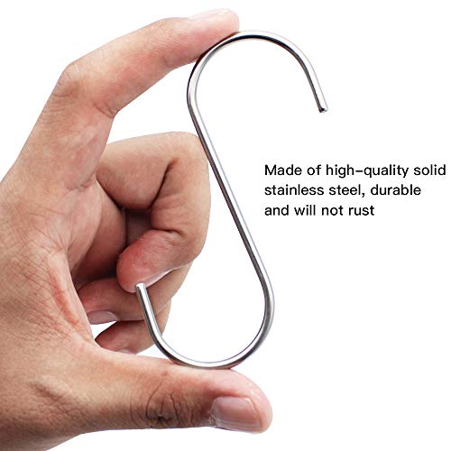 [Materiale di alta qualità]: Il gancio a S è realizzato in acciaio inossidabile, resistente alla corrosione e all'umidità, con una superficie liscia e lucida e senza spigoli vivi per proteggere le mani dai graffi.