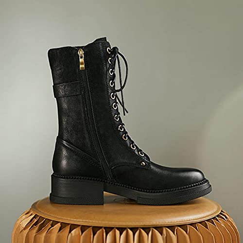 RTPR Stivaletti da donna, tinta unita, stile vintage, cowboy, con chiusura lampo, alla moda e plateau, per il tempo libero, traspiranti, Nero, 39 EU