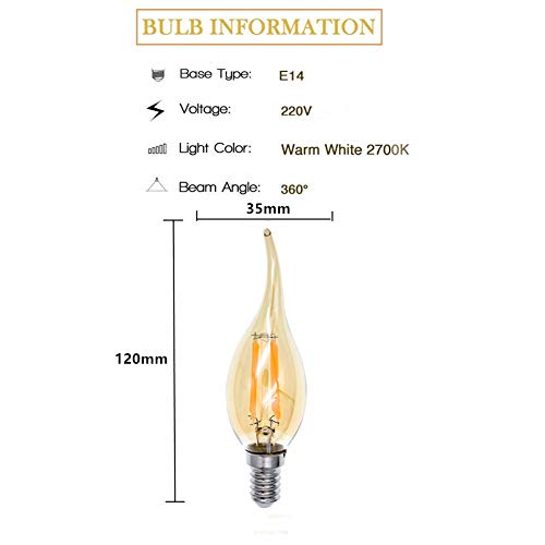 Ruankenshop Lampadina Vintage LED Lampadina Vintage Lampadina a Vite Piccola E14 Lampadina Edison Lampadina E14 Lampadine a Candela a LED 2,6w