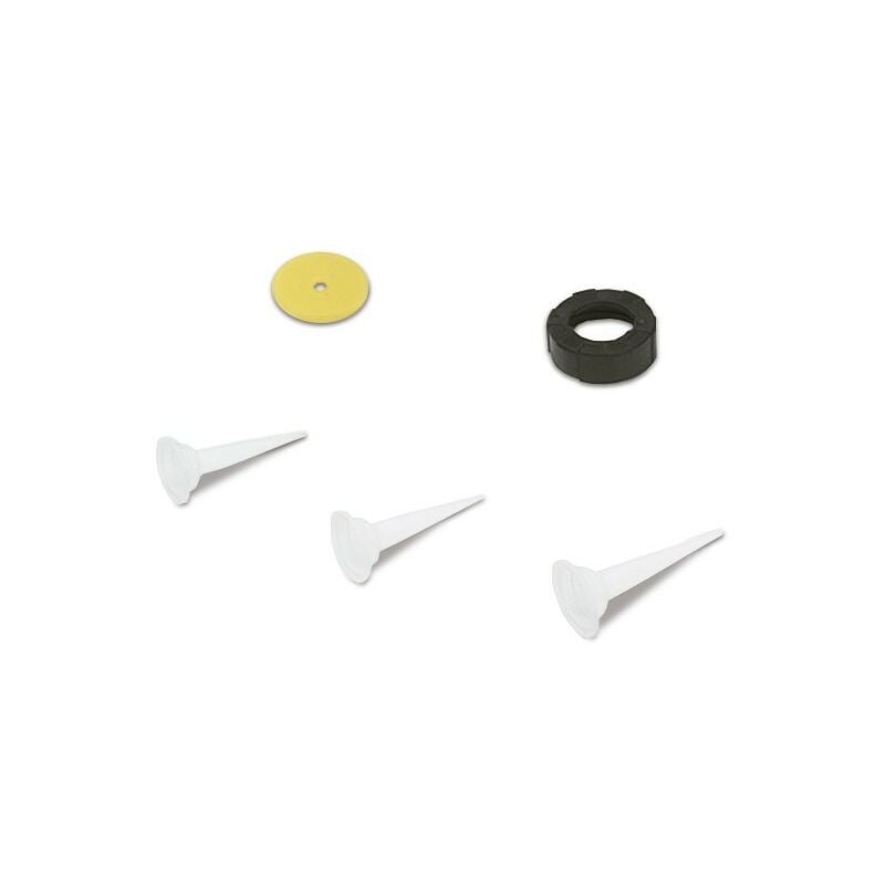 Kit applicatore di ricambio. compatibile con l'applicatore elettrico (cod. 66915) e l'applicatore manuale (cod. 65990) di rubi. include un filo di chiusura di ricambio, uno stantuffo flessibile per l'applicazione di stucco a base di cemento e 3 ugelli sostituibili regolabili in base alla larghezza della fuga (da 2 mm a 14 mm di diametro). ideale per l'applicazione di stucco, siliconi e stucco poliuretanico.