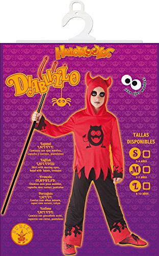 Questo costume di Diablito include un top rosso con dettagli di stampa del diavolo con occhi in movimento e cappuccio, corna e pantaloni attaccati. Chiusura regolabile per un facile posizionamento. Imballato correttamente in borsa appendiabiti. NON COMPRENDE TRIDENTE