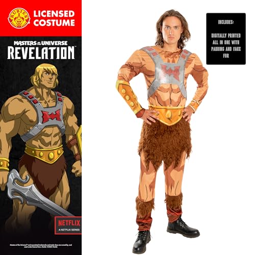 Rubies Costume He-Man Deluxe per adulto, tutina con petto muscoloso stampato digitalmente, ufficiale Masters Of The Universe per carnevale, Halloween, Natale e compleanno