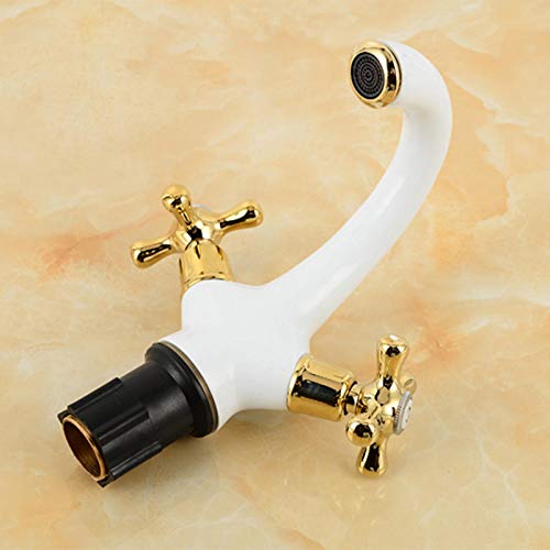 Rubinetti per bidet Rubinetti per lavelli da cucina Rubinetto per lavabo elegante con due maniglie in cristallo Rubinetto per lavabo Miscelatore per lavandino per bagno bianco e oro Rubinetto per acqu
