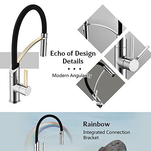 Rubinetti da cucina flessibili con doccetta estraibile nero cromato rubinetto miscelatore per lavello da cucina con spruzzatore estraibile Rubinetti per lavello a leva singola per cucina beccuccio