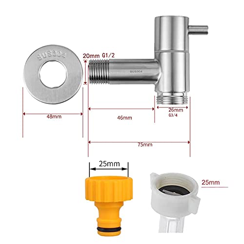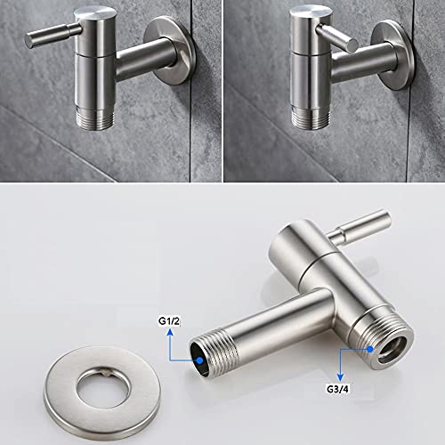 Rubinetto per acqua in acciaio inox 1/2" ingresso e 3/4" filettato attacco a parete per lavanderia bagno giardino
